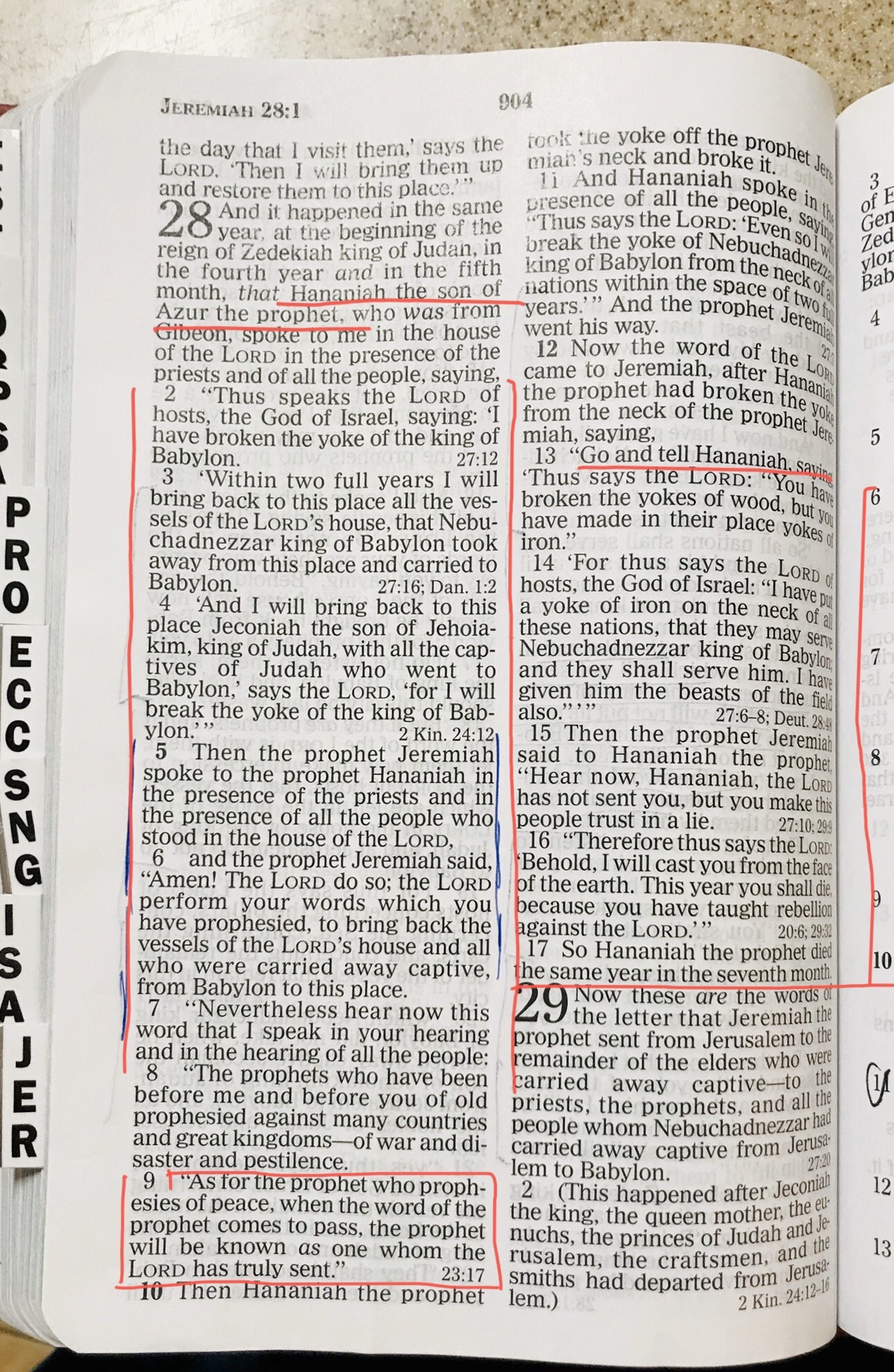 The one where God told Hananiah “You have broken the yokes of wood, but you have made in their place yokes of iron.”