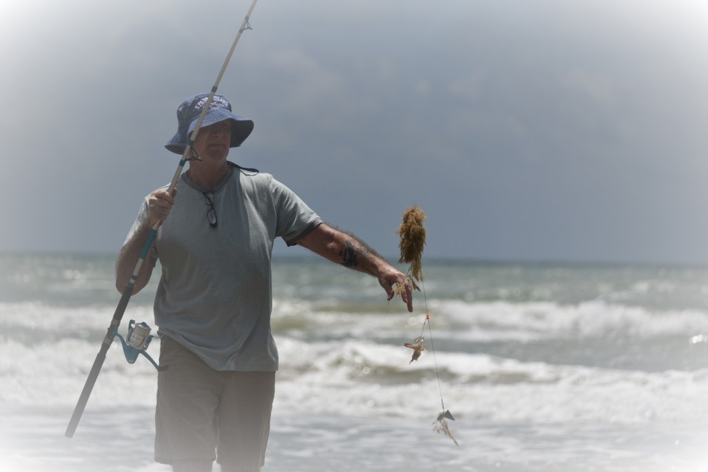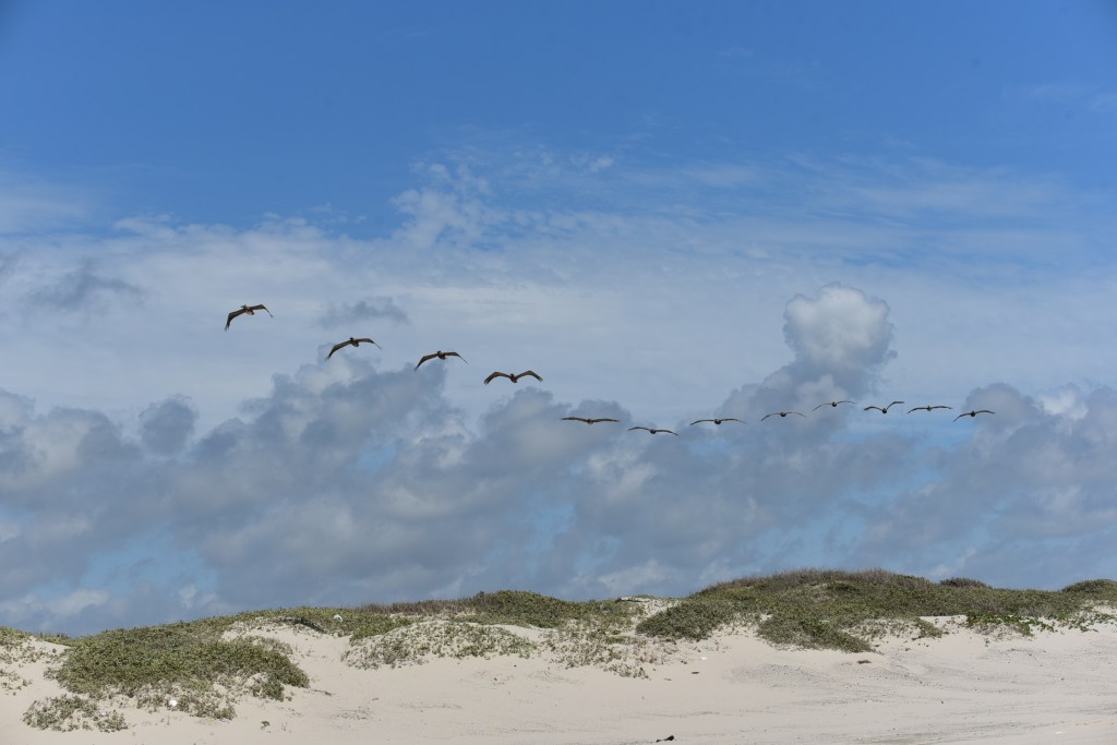It was a hot day, but a beautiful day at Padre Island National Seashore. The catch of the day was seaweed, but the birds were entertaining.